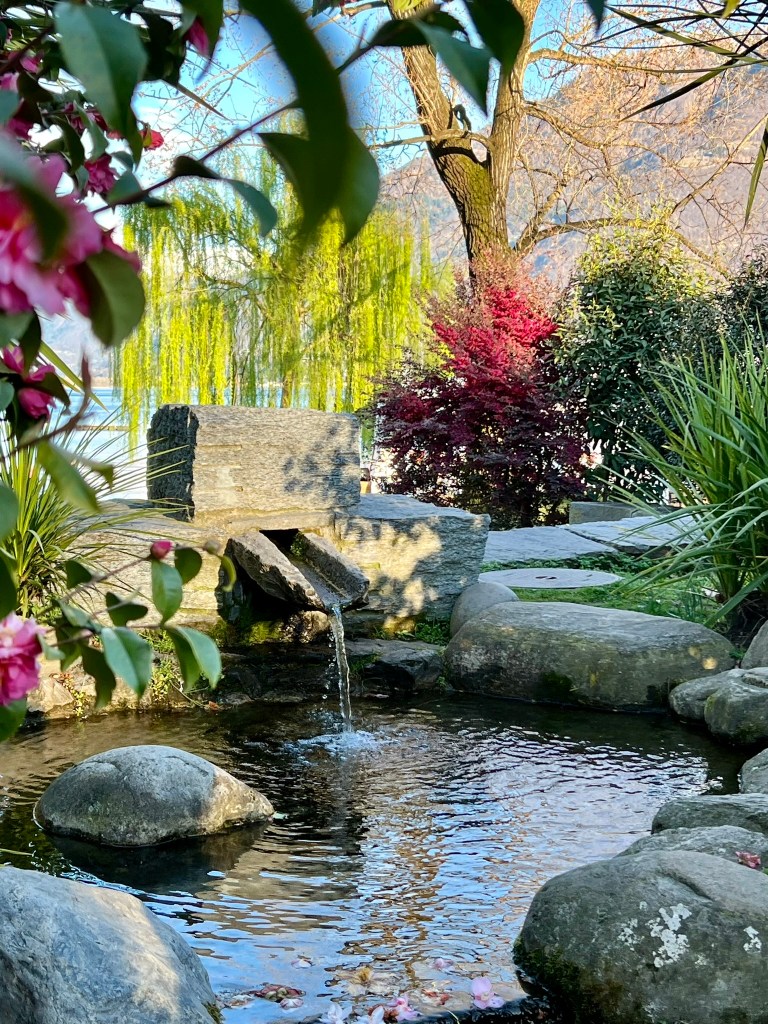 Auf unserer Tour entlang des Lagos musste es für mich als große Blumenliebhaberin schließlich auch in den Kamelienpark in Locarno gehen. Ende März zeigt sich bereits der Park in seiner vollen Pracht und Schönheit. Ich war einfach verzaubert von der Vielfalt dieser zahlreichen, teilweise auch duftenden Kamelienarten. Dieser schön angelegte Garten war als kleine Oase der Ruhe, mit dem Blick über den See und auf die Berge sowie einer letzten Qi Gong Einheit ein wunderschöner Abschluß dieser Tour.